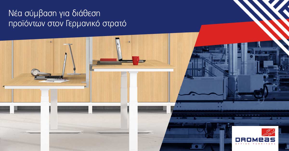 Νέες παραγγελίες ύψους 27.000.000€ έλαβε η εταιρία ΔΡΟΜΕΑΣ από το Γερμανικό στρατό για την επόμενη τετραετία! Τα είδη που θα παράγει η εταιρεία είναι ειδικοί φoριαμοί διαφόρων τύπων, απλά και ηλεκτρικά ρυθμιζόμενα καθ’ ύψος γραφεία, συρταριέρες και αξεσουάρ. Με τις…