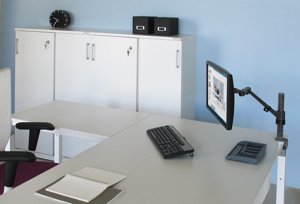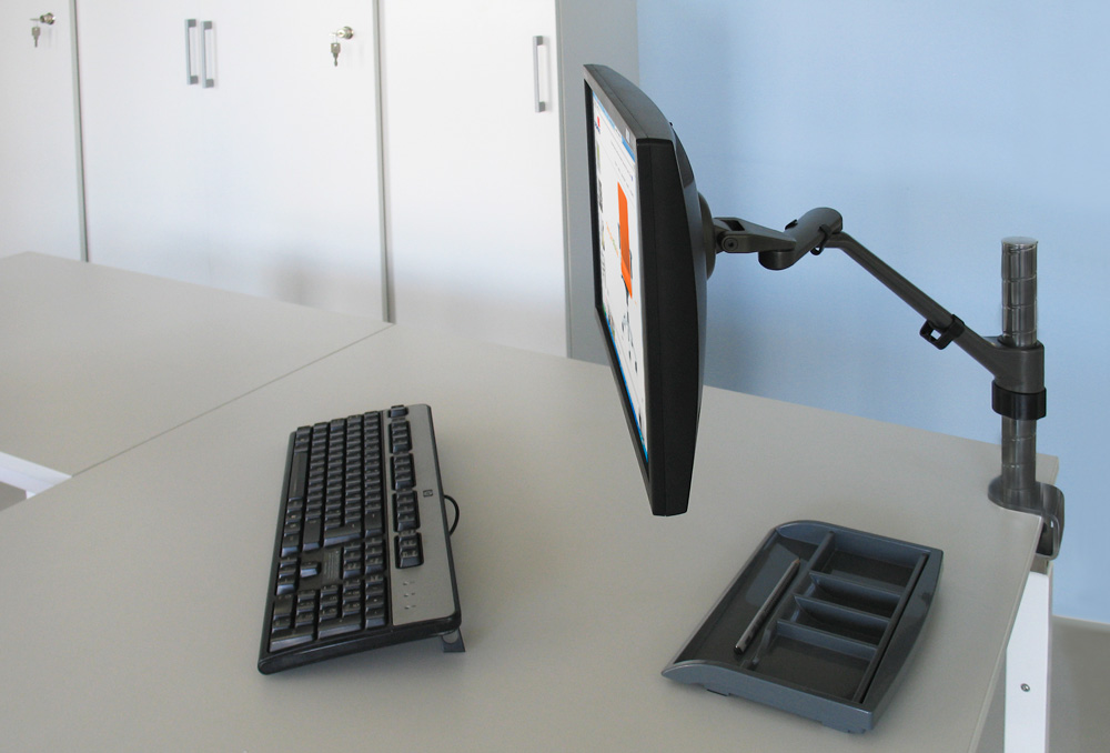 Ο βραχίονας στήριξης οθόνης LIBERTY τοποθετείται στην επιφάνεια γραφείου.