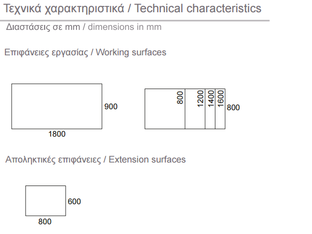 βιδώνεται στα κατακόρυφα στοιχεία των ποδιών. Οι επιφάνειες εργασίας