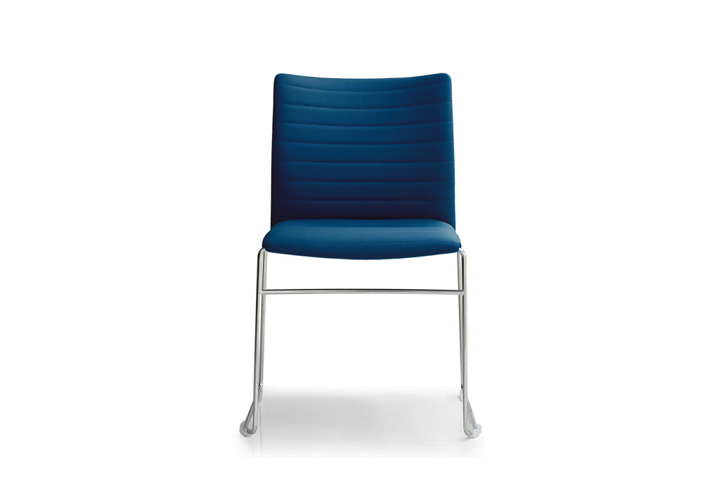 Στοιβαζόμενο κάθισμα σεμιναρίων της σειράς Ena με ξεχωριστή έδρα – πλάτη. Διαθέτει μεταλλικό επιχρωμιωμένο σκελετό.